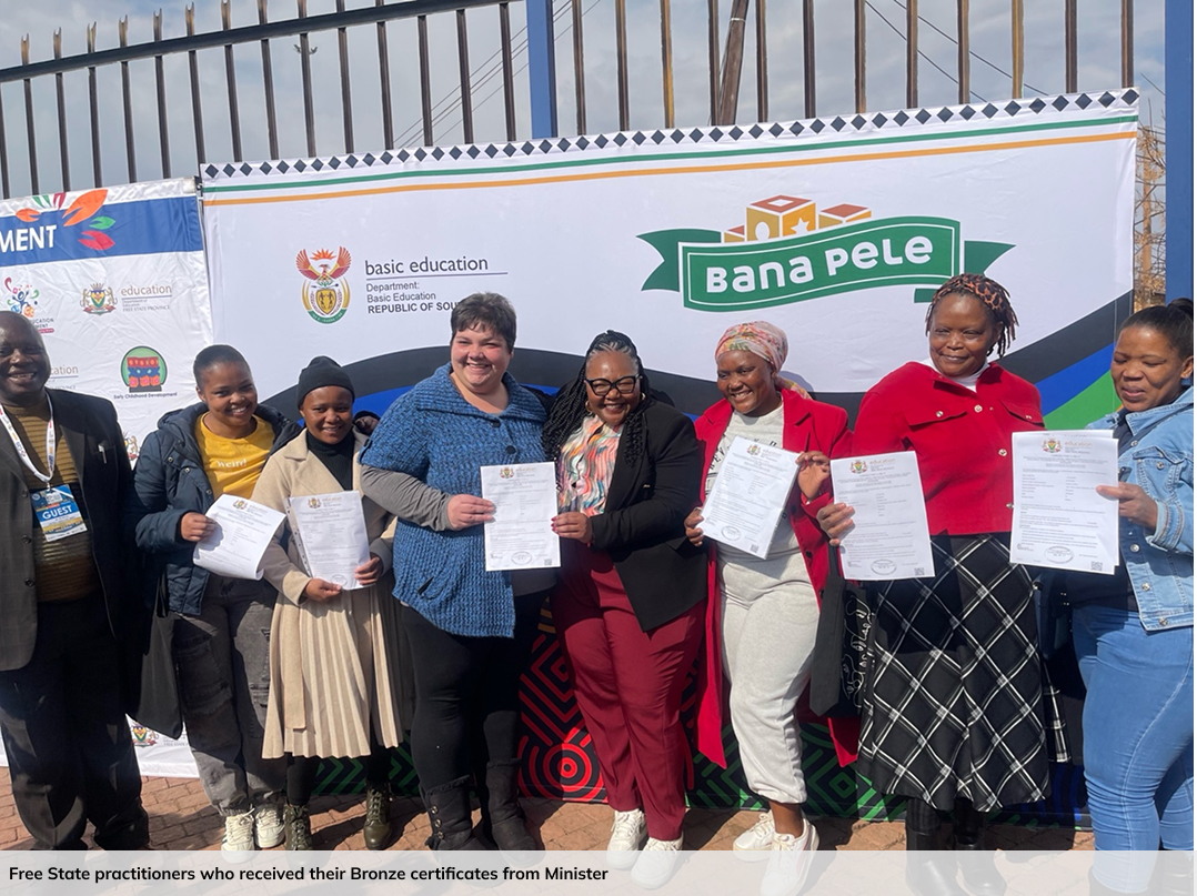 S.I. Maseko – Rams Day Care, K.P. Seape – Maitemogelo Day Care, L. De Beer – Kid Zone ECD, Minister of Basic Education, Ms. Siviwe Gwarube, M.B. Makomotoane – Angels Day Care, R.M. Julius – Fledging ECD, M.S. Jansen – Unathi Day Care