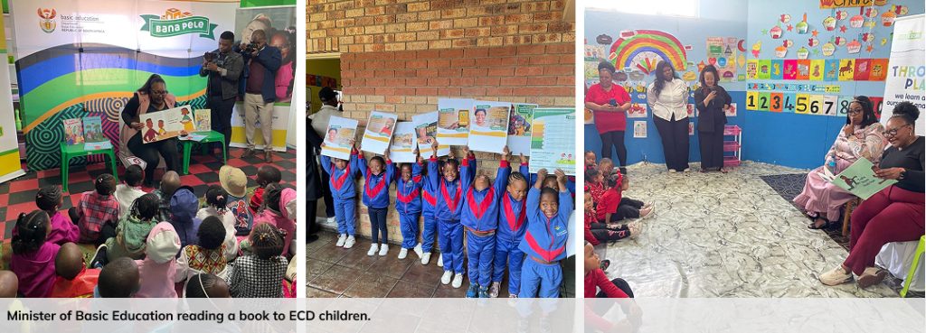 During the registration clinics in the Eastern Cape and Free State, the Minister read to eager children using the latest ECD books launched by Bookdash in partnership with the DBE and UNICEF. These books are free to download and available in all South African languages. Children were excited and engaged, posing interesting questions and responses about the story.